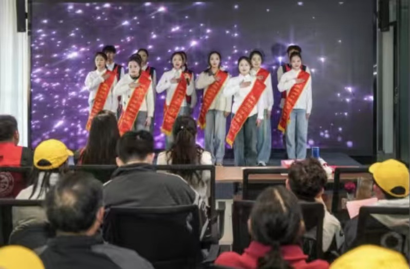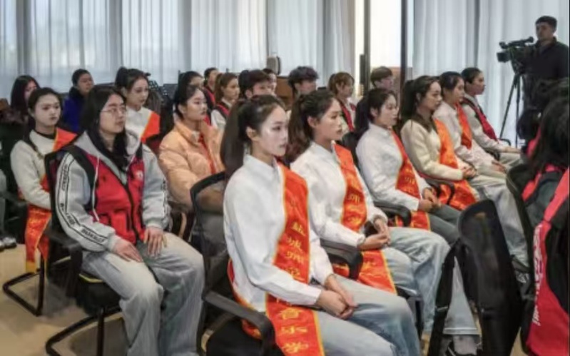 活动中,音乐学院、淮剧学院236班的同学们深情演绎手语歌《感恩的心》,以灵动的手势传递真挚温暖的情怀,让感恩之美在现场静静流淌。志愿者们与学子亲切相伴,用关爱传递力量,以陪伴温暖时光,尽显青春担当与人文温情。值得一提的是,236班团支书李鑫宇在现场接受了亭湖新闻的采访,分享了参与志愿服务的感悟与收获,展现了当代大学生的责任与风采。