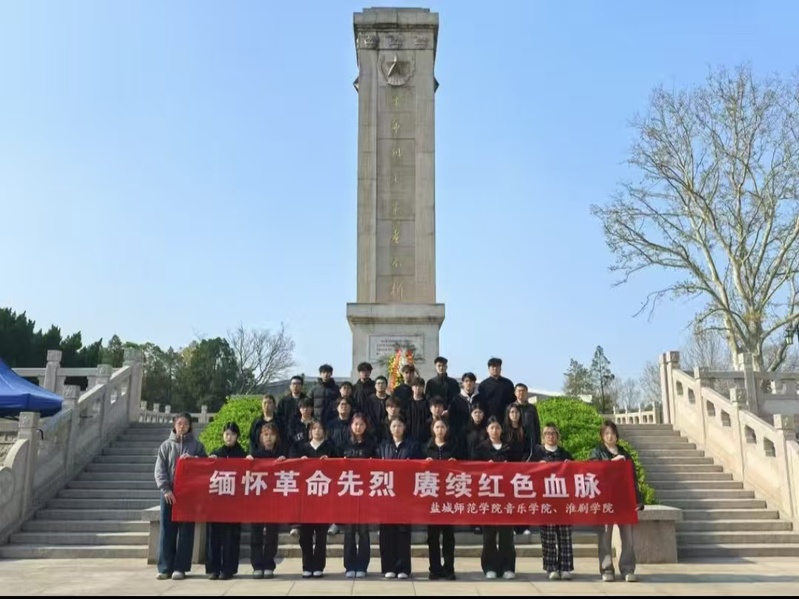 4月4日,音乐学院、淮剧学院师生代表怀着无比崇敬的心情,来到盐城市烈士陵园,开展“缅怀革命先烈,赓续红色血脉”主题祭扫活动,深切缅怀为民族独立、人民解放和国家富强英勇献身的革命先烈。党委副书记韩伟副教授率队参加。