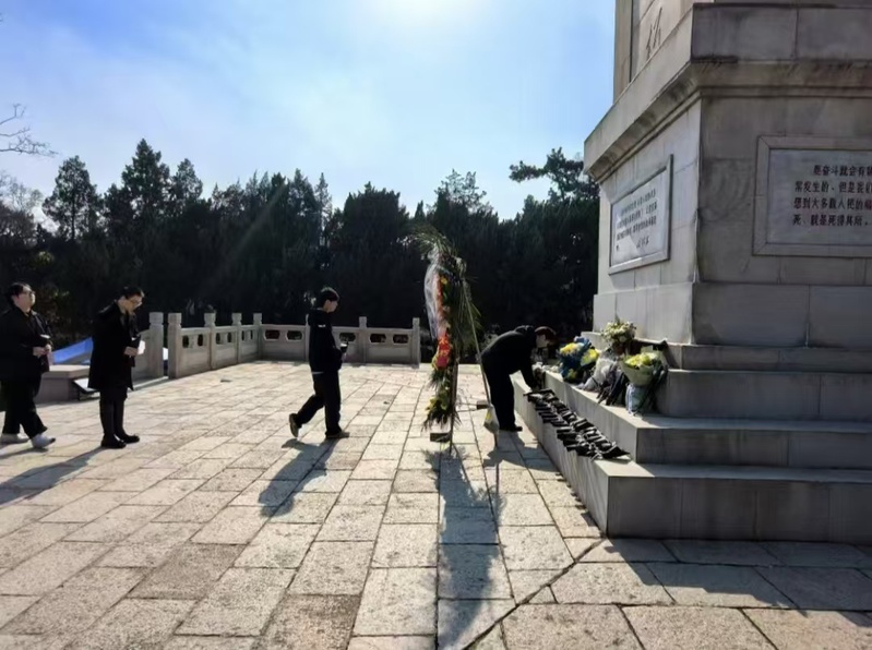 师生代表整齐列队,面向高耸的烈士纪念碑肃立,垂首默哀三分钟,向长眠于此的英雄儿女致以最深切的追思。随后,师生代表缓步上前,向革命先烈敬献鲜花,以朴素而庄重的仪式表达对英烈的崇高敬意。